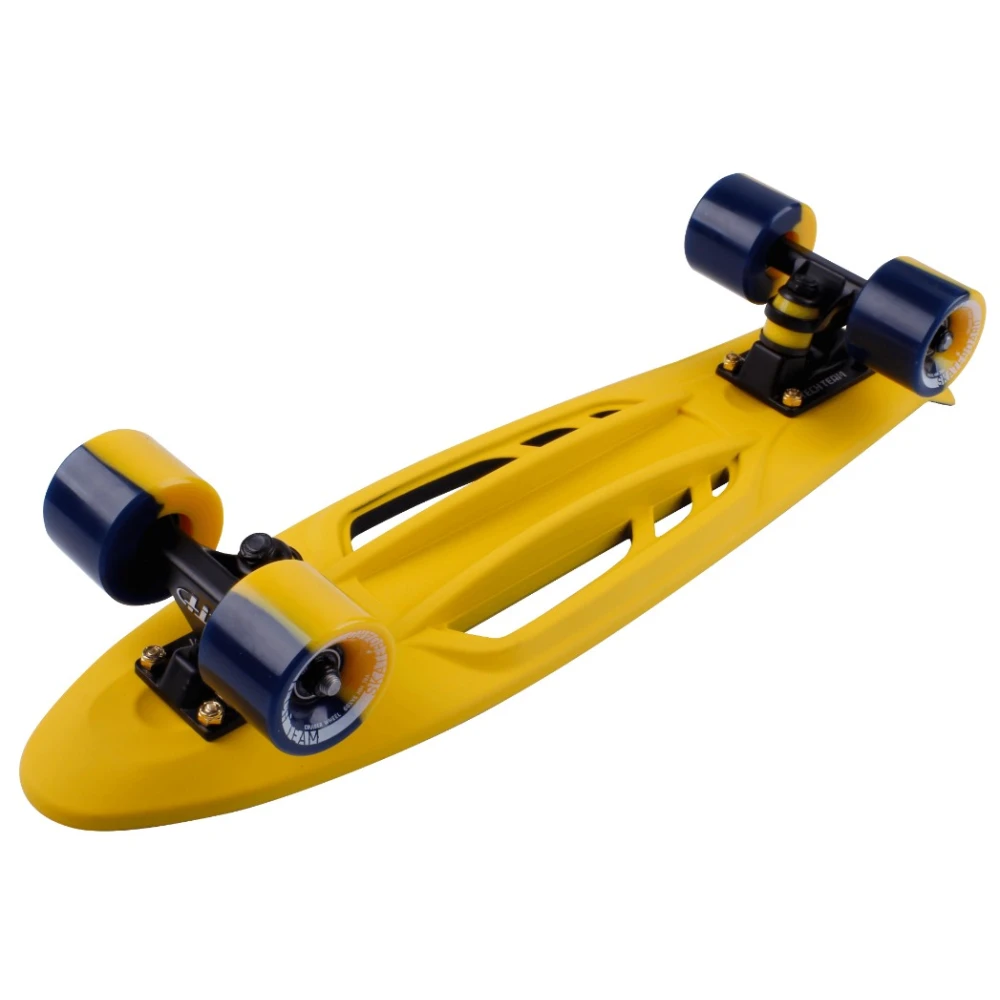Скейтборд пластиковый Shark 22 blue/yellow один из представителей быстрых и манёвренных круизеров, которому все возрасты покорны, он подходит как для детей, так и для взрослых. Яркий дизайн привлекает своей индивидуальностью, вес скейтборда составляет 1,8 кг. Визитной карточкой такого пластборда является красочная подвеска.