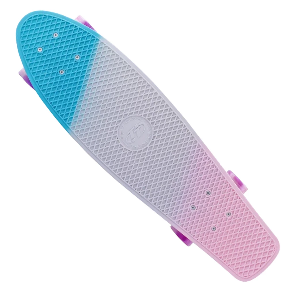 Скейтборд пластиковый TRICOLOR 27" бирюзовый/розовый – идеальный вид транспорта для активного время провождения по городской местности и парковой зоне. Пэнниборд, визуально похожий на рынку способен к безопасному маневрированию и плавной езде. Купить TRICOLOR 27" выгодно, получить бесплатную консультацию предлагает наш интернет-магазин.