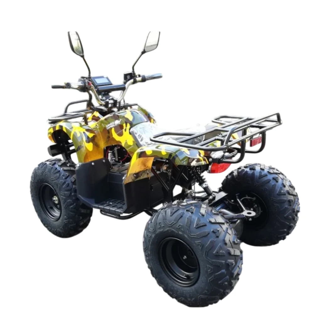 Двигатель мощностью 1000 Вт позволяет разогнаться до 40 км/ч, а 20 Ач гелевый аккумулятор позволит пройти “на одном дыхании” 40 км пути, а далее потребуется 8-часовая подзарядка. Квадроцикл оснащен передними и задними дисковыми гидравлическими тормозами, обеспечивая безопасность в нужный момент. Имеет спидометр с индикатором заряда, переключатель мощности в 3х режимах с ключем для родителей.
