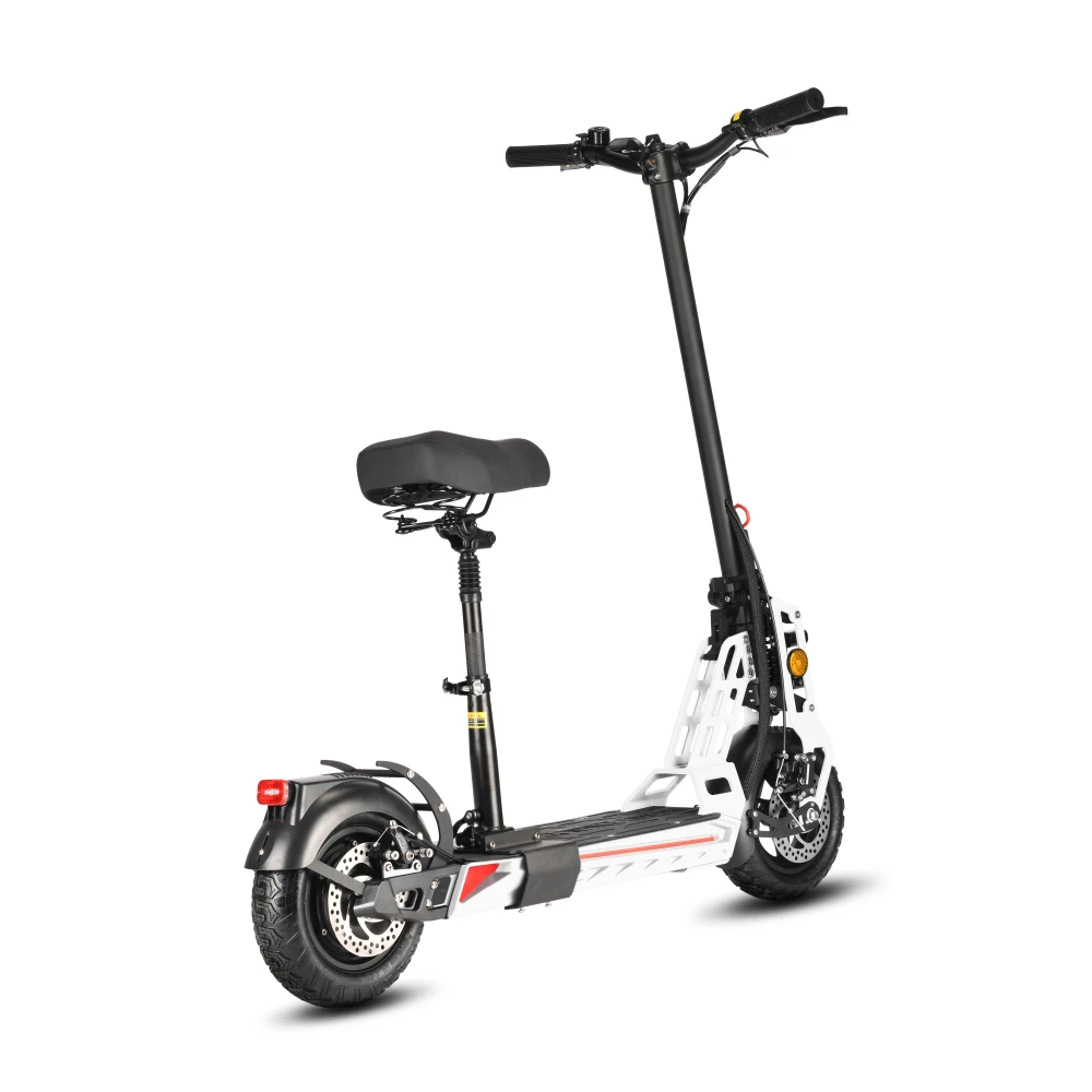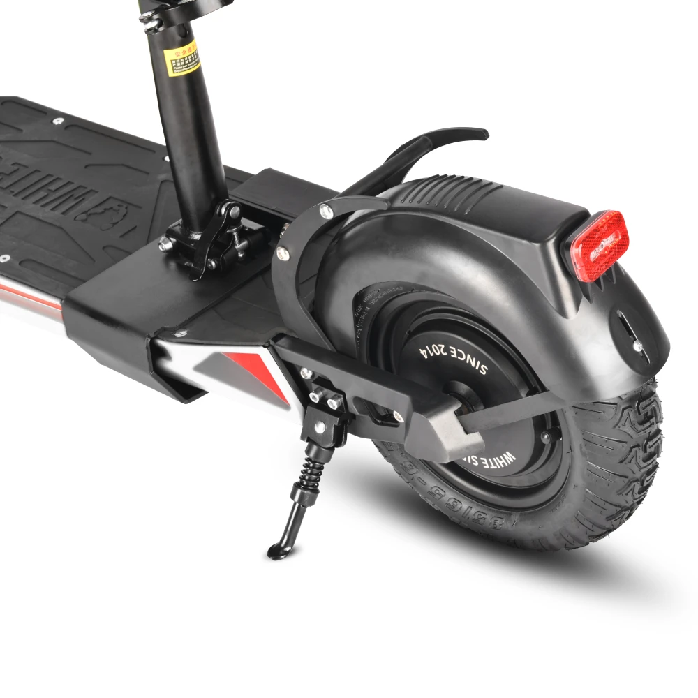 Электродвигатель мощностью 1000 Вт свободно разгоняется до максимальных показателей 45 км/час. Литий-ионный аккумулятор (емкостью 16000 мАч) надежно защищен от механических повреждений. Полного заряда АКБ (8 часов) хватит на прохождение 50 км пути. Амортизационные пружины хорошо смягчают дорожные неровности и дарят полное ощущение комфорта. Складная конструкция и удобное сидение делают его особенно популярным среди райдеров. Резиновые надувные колеса (11 дюймов) рассчитаны на эксплуатацию в городской местности и парковых зонах. Широкая дека 22*47 см позволит пользователю комфортно располагаться при поездках. Дисковая механическая тормозная система предусмотрена отдельно на каждом колесе дарит райдеру полное ощущение безопасности. Для большего удобства поездок на руле расположен переключатель скоростей.