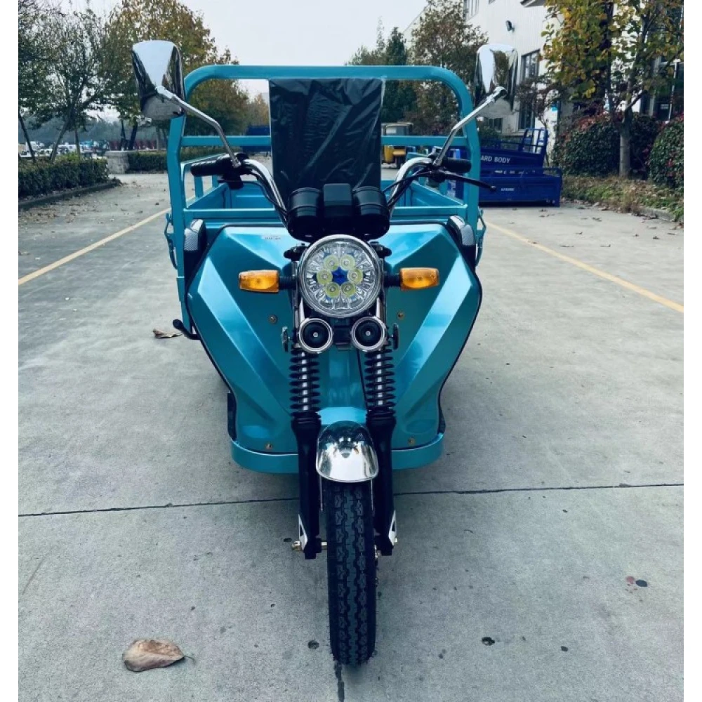 Техника изготовлена из высокопрочного материала, который в ходе эксплуатации не теряет своих характеристик. Производитель учел все пожелания и оснастил модель шасси с гидравлическими амортизаторами. Для безопасности движения у электротрицикла барабанные передние и задние тормоза. Транспорт имеет мотор мощностью 1000 Вт, что позволяет развивать скорость до 30 км/час. Количество циклов разрядки/зарядки составляет 700. Ресурса батареи хватает на 15 тыс.км. Это доступный вид транспортного средства с максимальной нагрузкой до 350 кг груза, не требует сложного обслуживания.