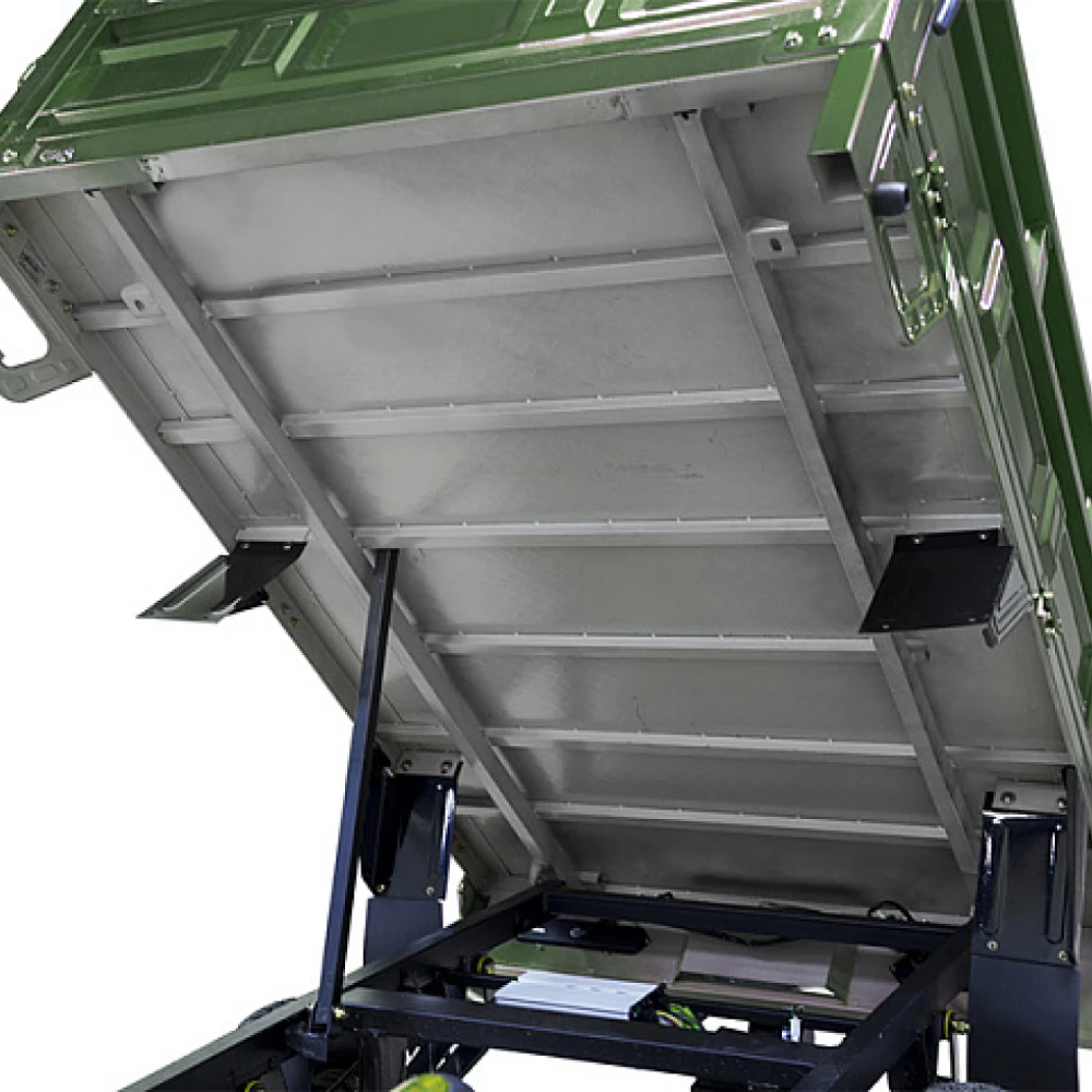 Мощность двигателя составляет 1500 Вт, в сочетании с гелевой тяговой батареей модель способна развивать скорость до 25 км/час и преодолевать 80 км пути. С такими характеристиками работать на приусадебном участке, в складском помещении или другой территории можно целый день. Модель оснащена вместительным кузовом, рассчитанным на грузоподъемность 1000 кг