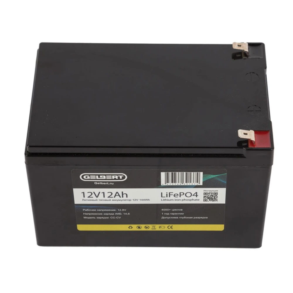 Литиевый тяговый аккумулятор Gelbert LiFePO4 (12V/12Ah/12A/144Wh) [6-DZF-12, 6-DZM-12]
