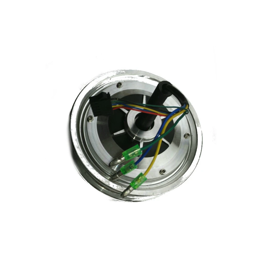 Данное мотор-колесо идет без покрышки и шины. Его конструкция достаточно надежная, с высокопрочного материала. Мощность двигателя 350 Вт. Декоративная внешняя сторона делает ее дизайн узнаваемым и при движении выглядит очень эффектно. С внутренней стороны идут провода с разъемами для подключения мотор-колеса к гироскутеру.